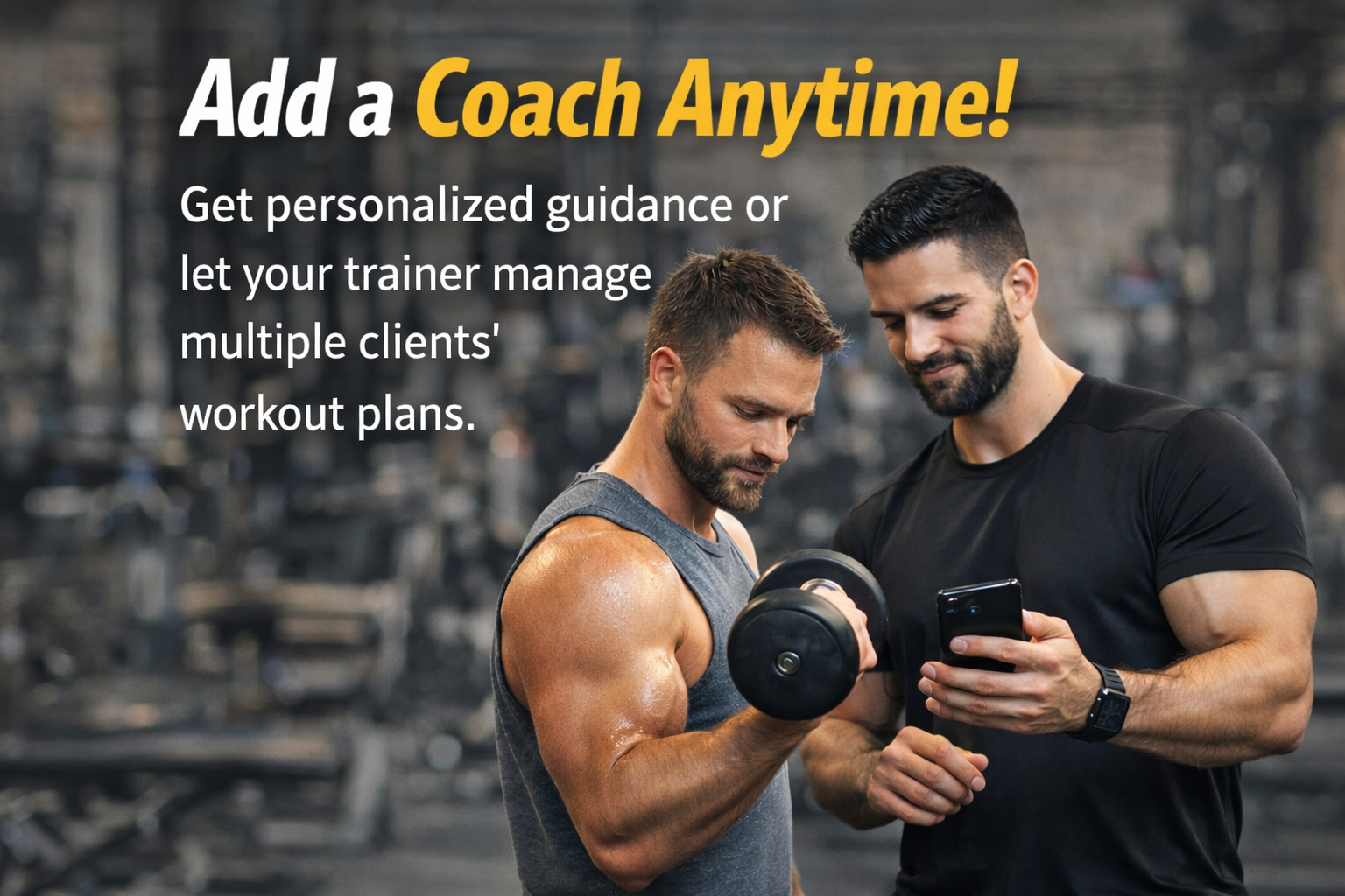 Your coach can create your workout plan, adjust exercises, sets, reps, and weights, or manage the plan together with you in real time.